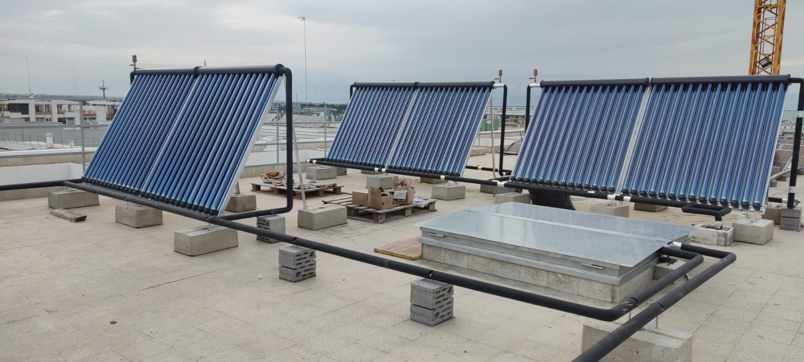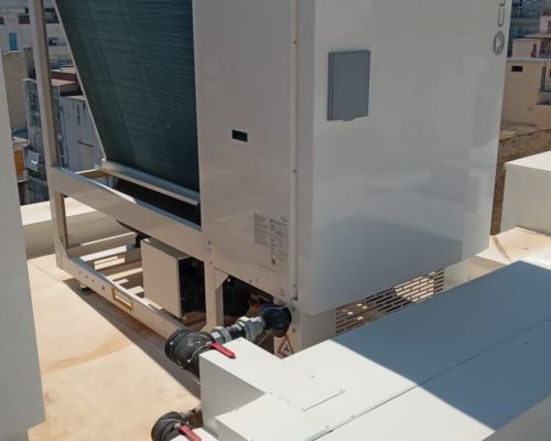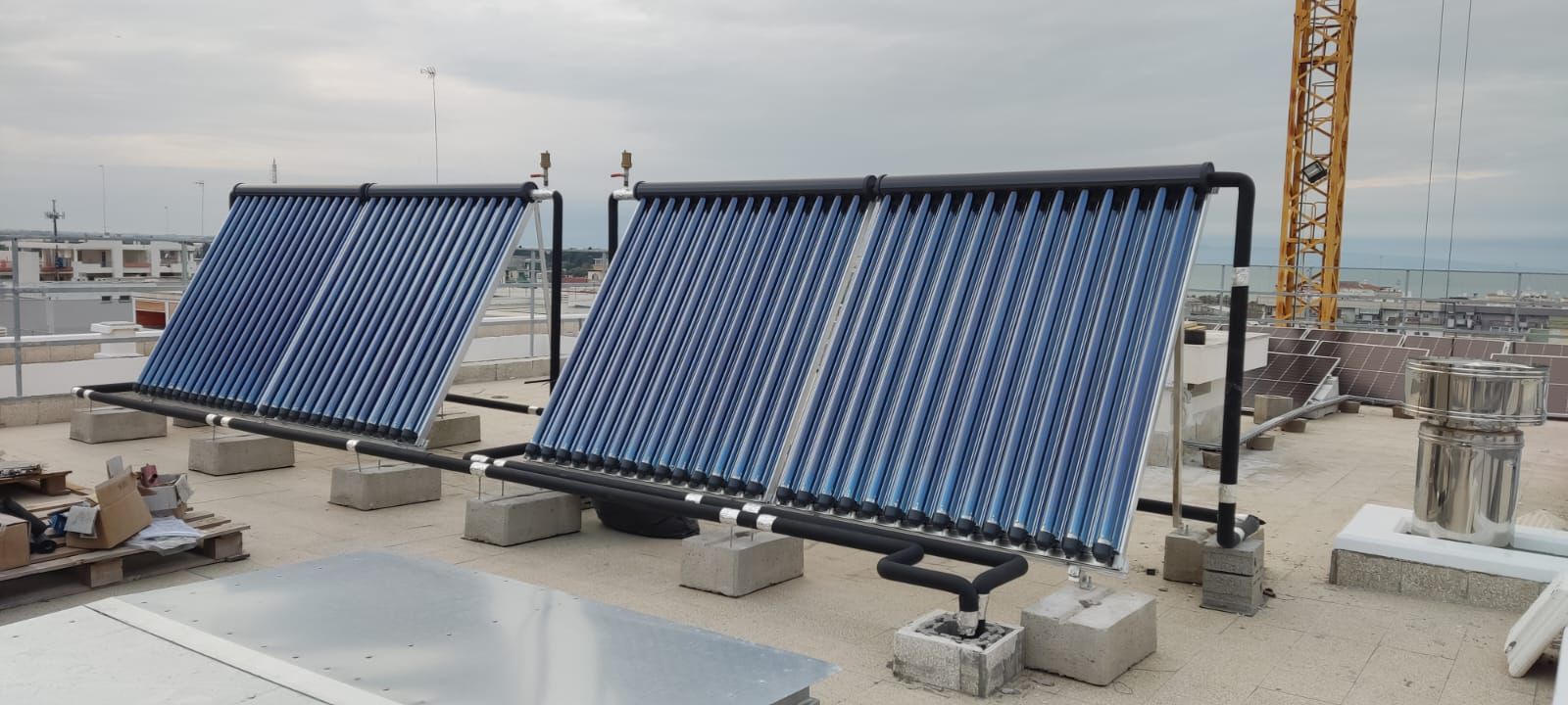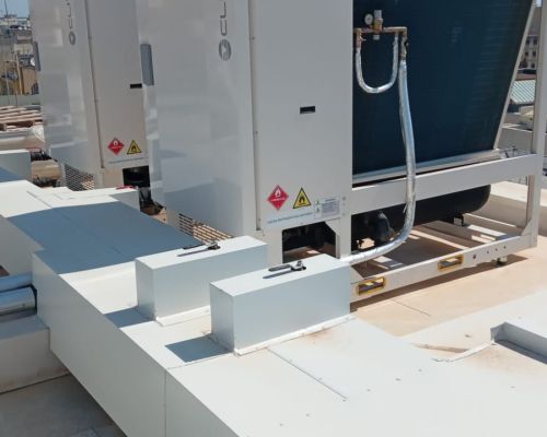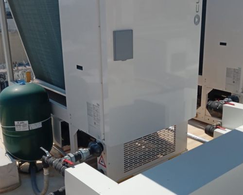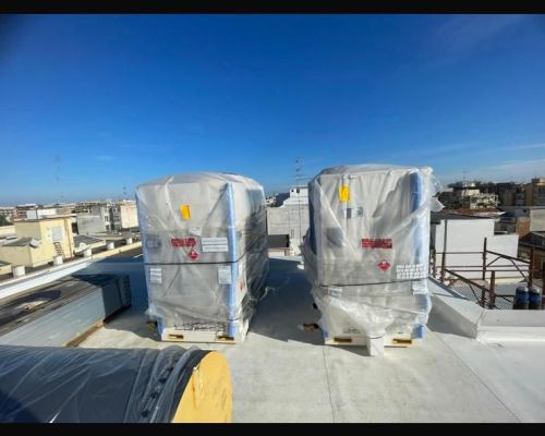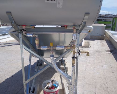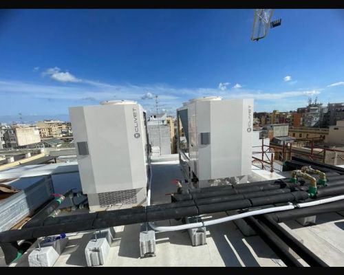 Con moduli in cascata per ACS instantanea con integrazione solare e centrale termorefrigerazione.