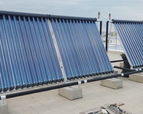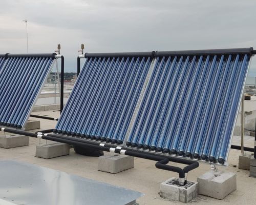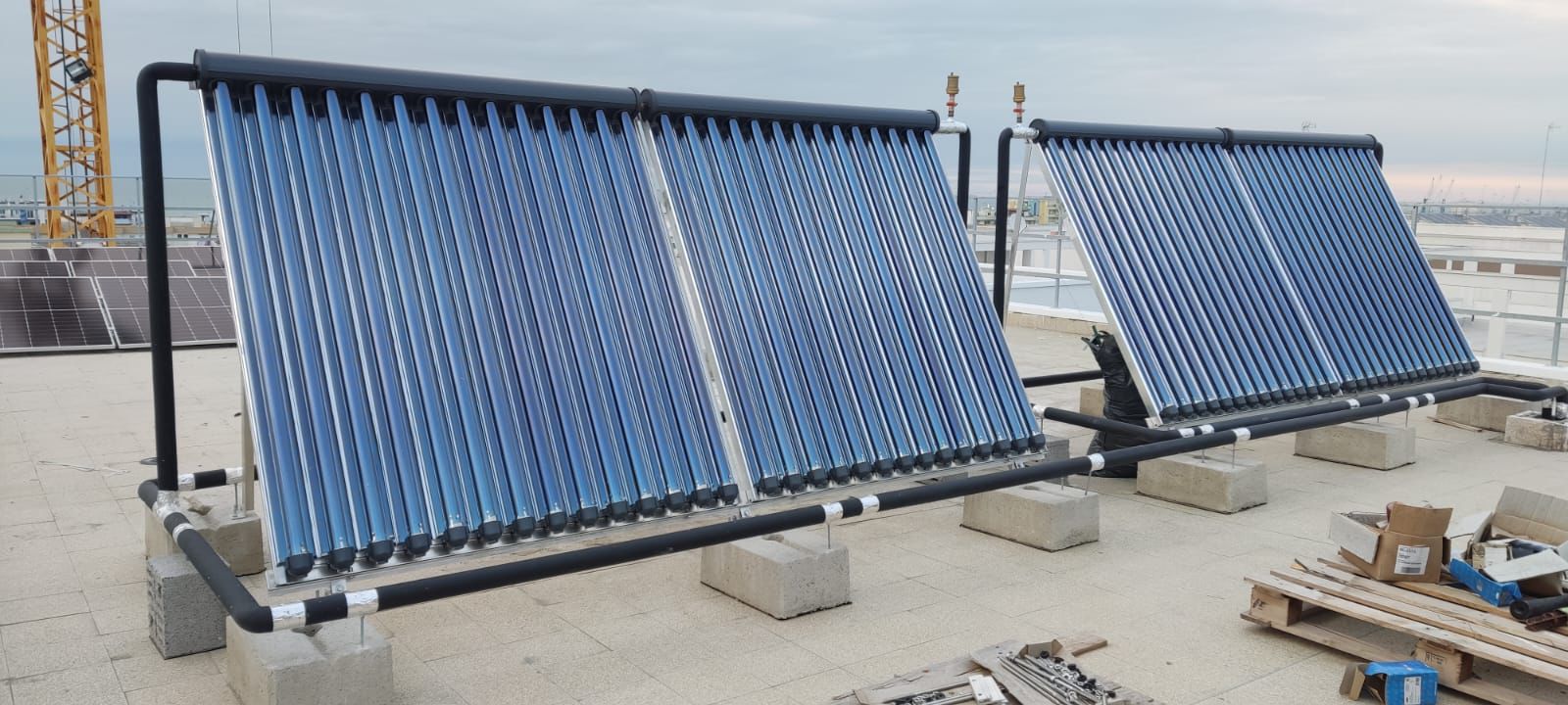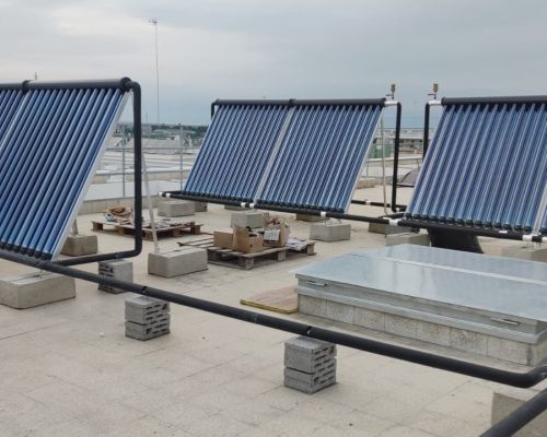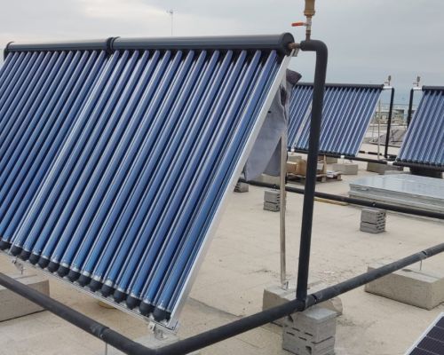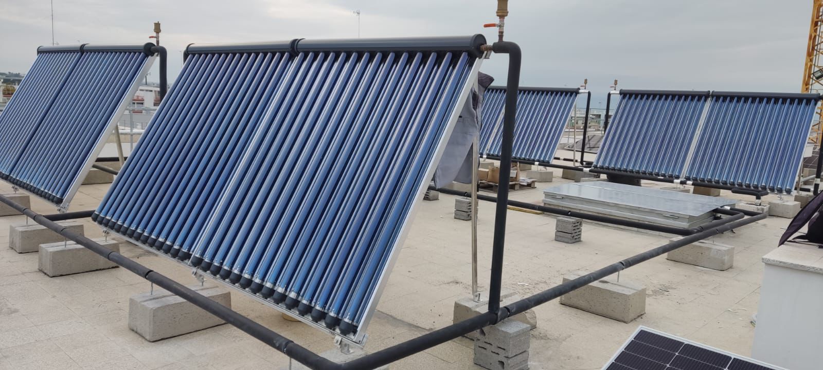 Con moduli in cascata per ACS instantanea con integrazione solare e centrale termorefrigerazione.