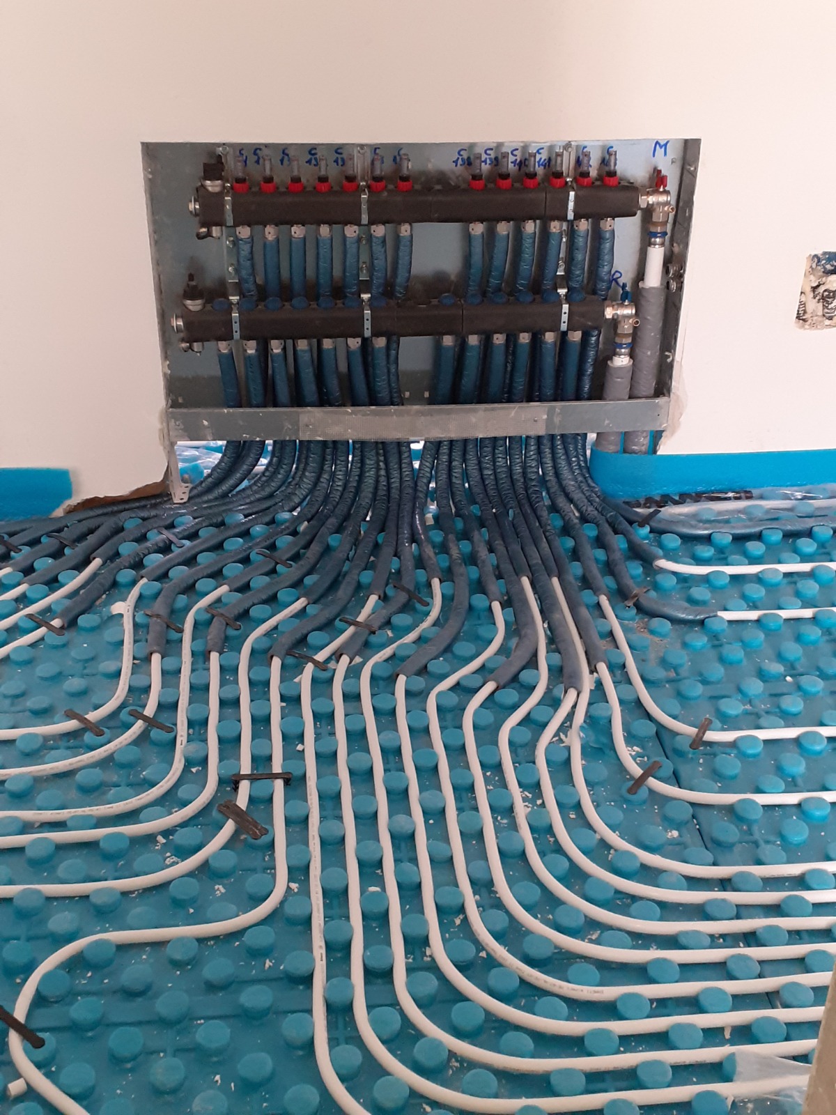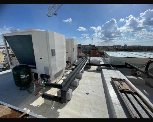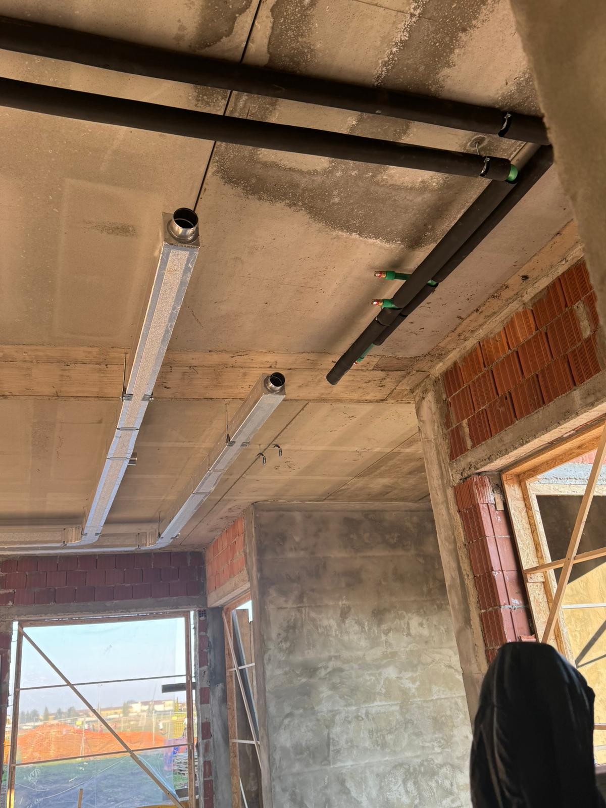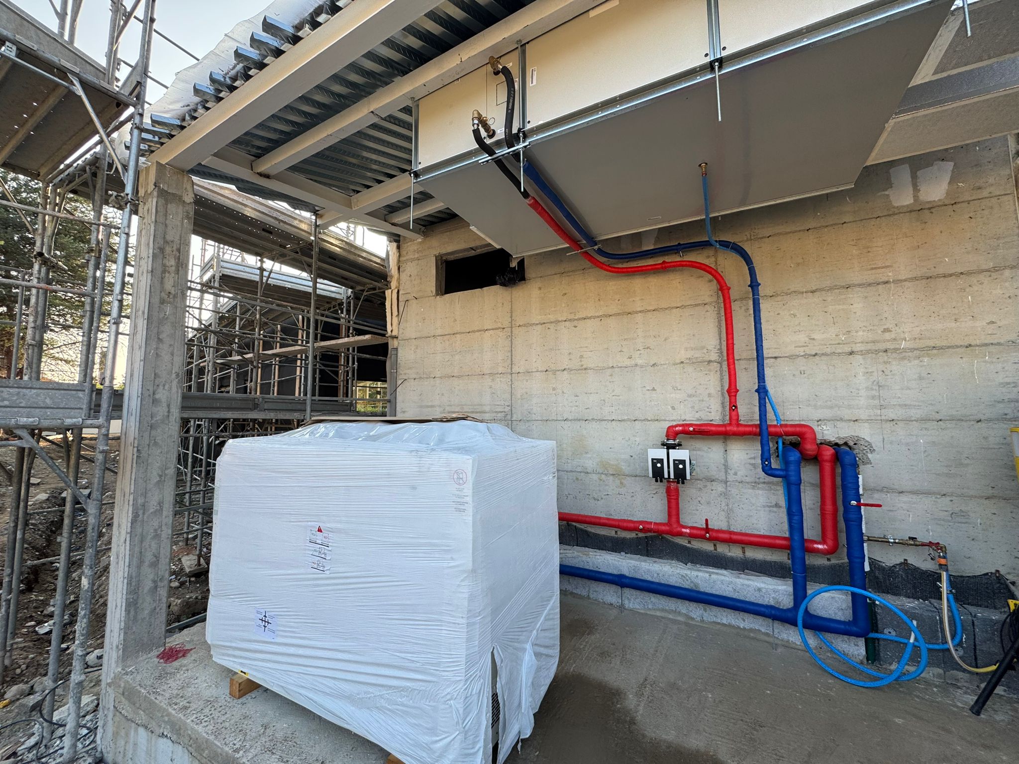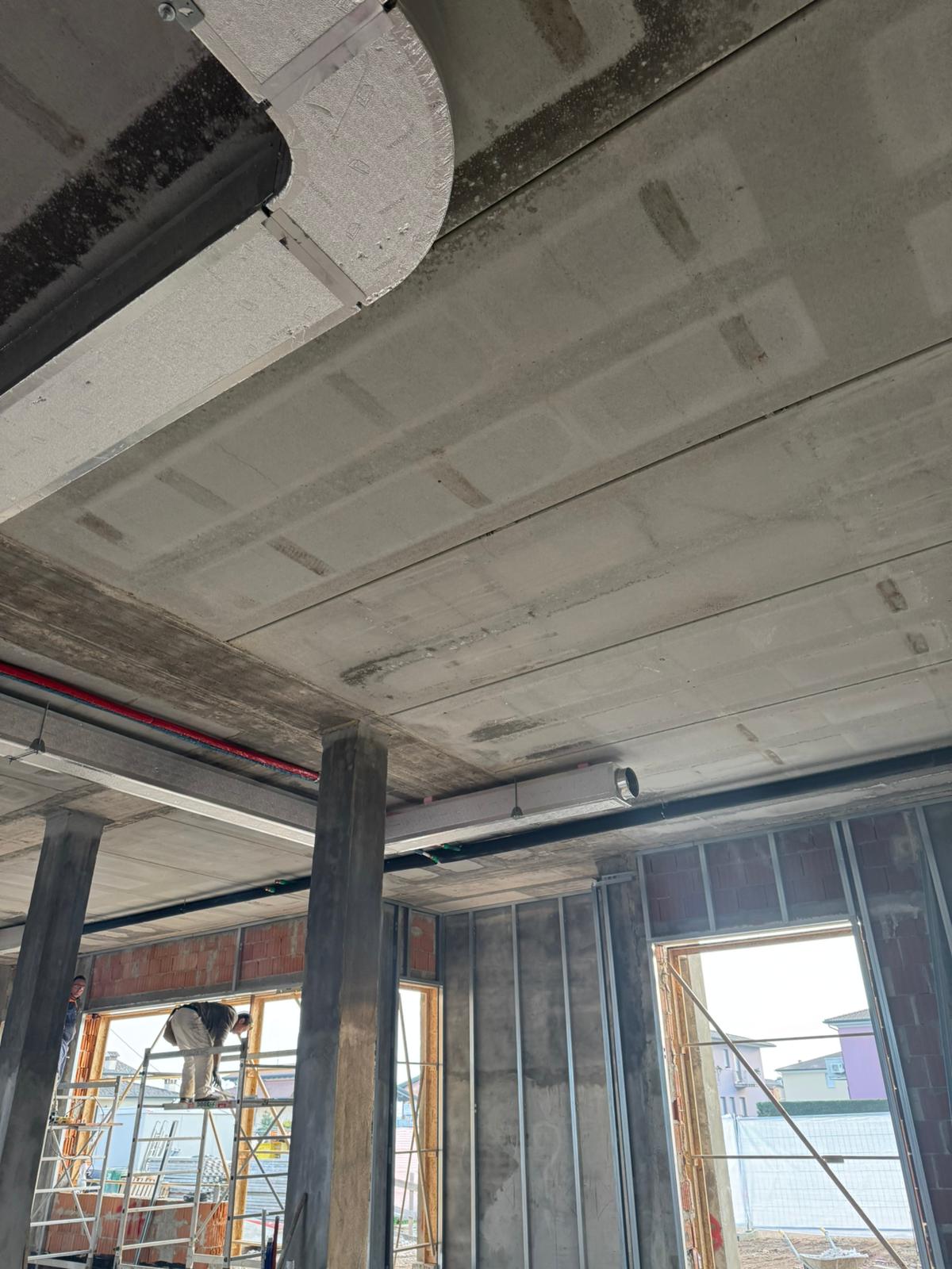 Impianto idrico; reti fognarie nere e saponate; pluviali e reti pluviali; impianto di riscaldamento a pavimento e raffrescamento tramite ventilconvettori a cassetta e canalizzati; impianto di ventilazione meccanica controllata (VMC); produzione di acqua calda sanitaria mediante pompa di calore; impianto radiante con termoregolazione; pompa di calore con unità esterna da 30 kW; sistema di addolcimento dell’acqua con addolcitore; impianto di ricircolo.