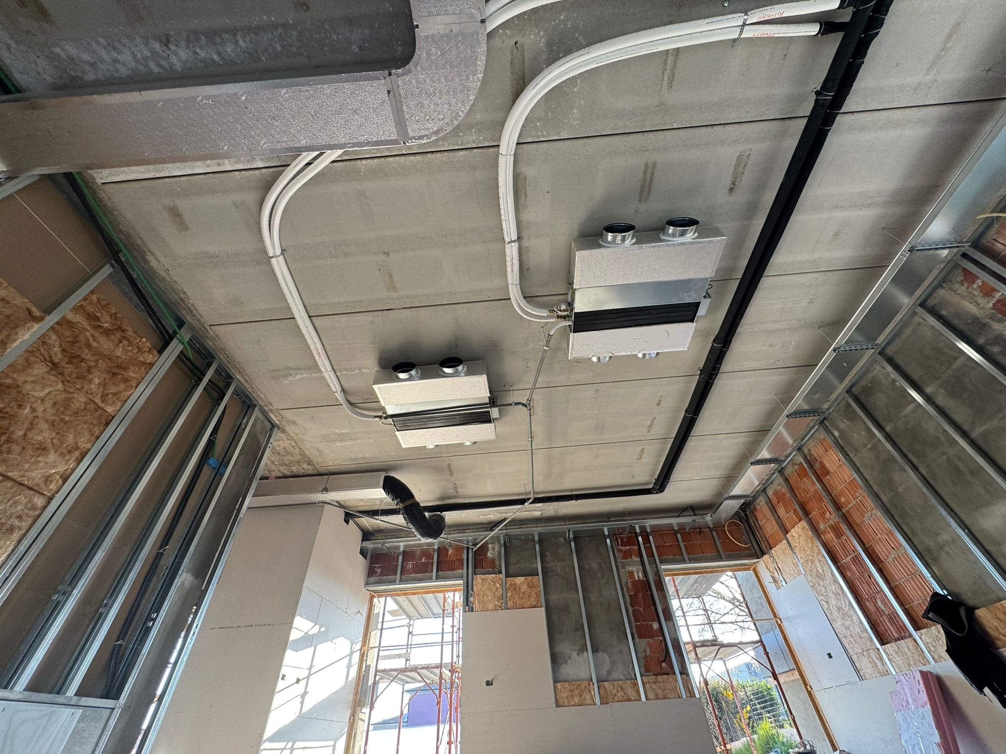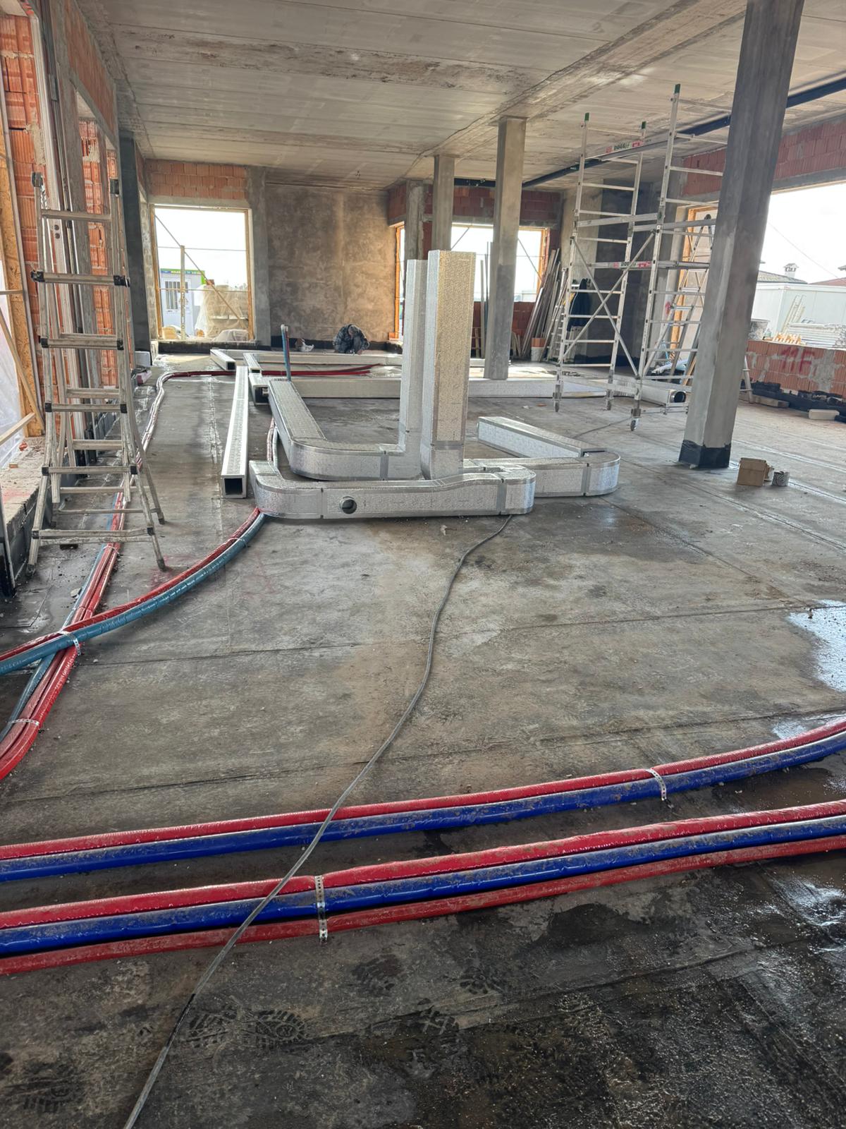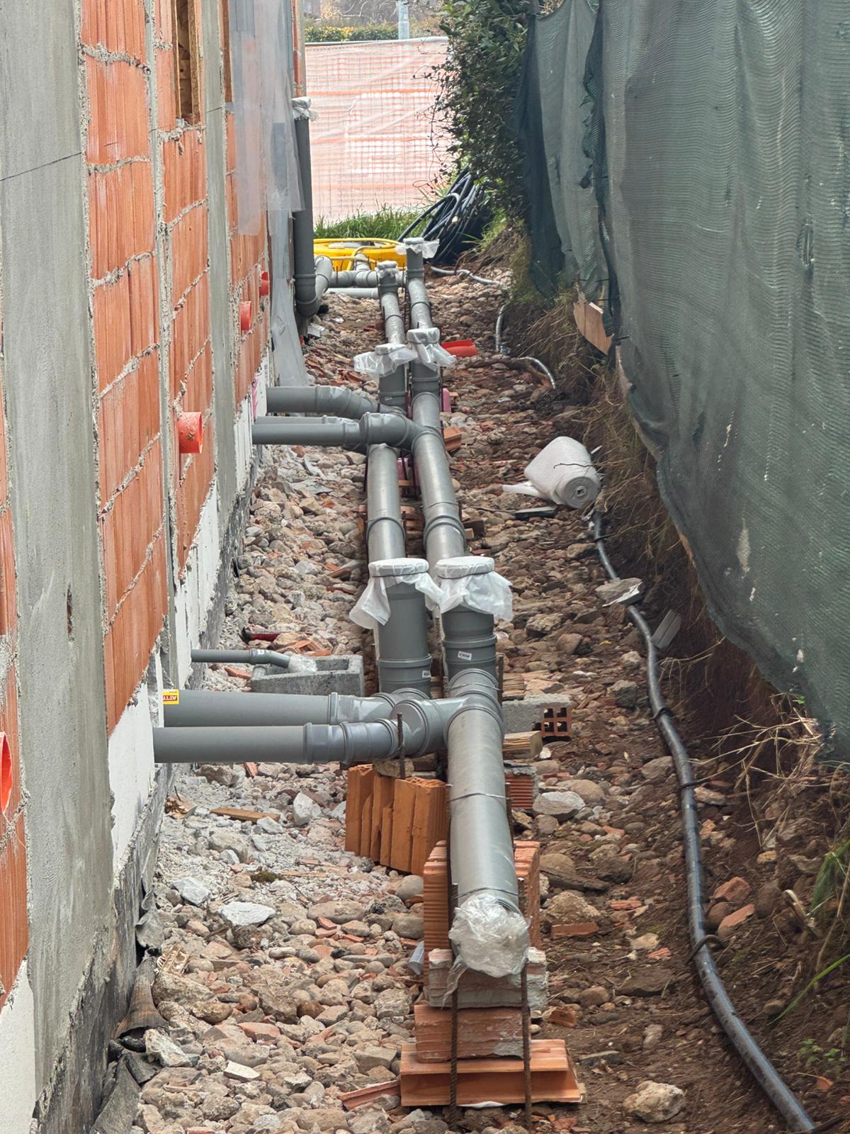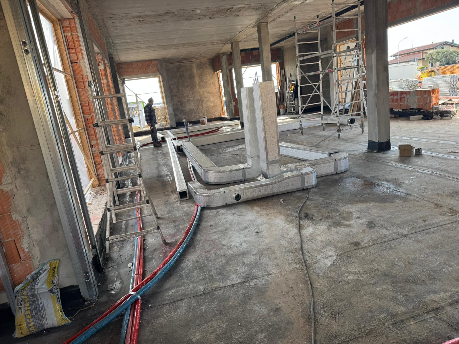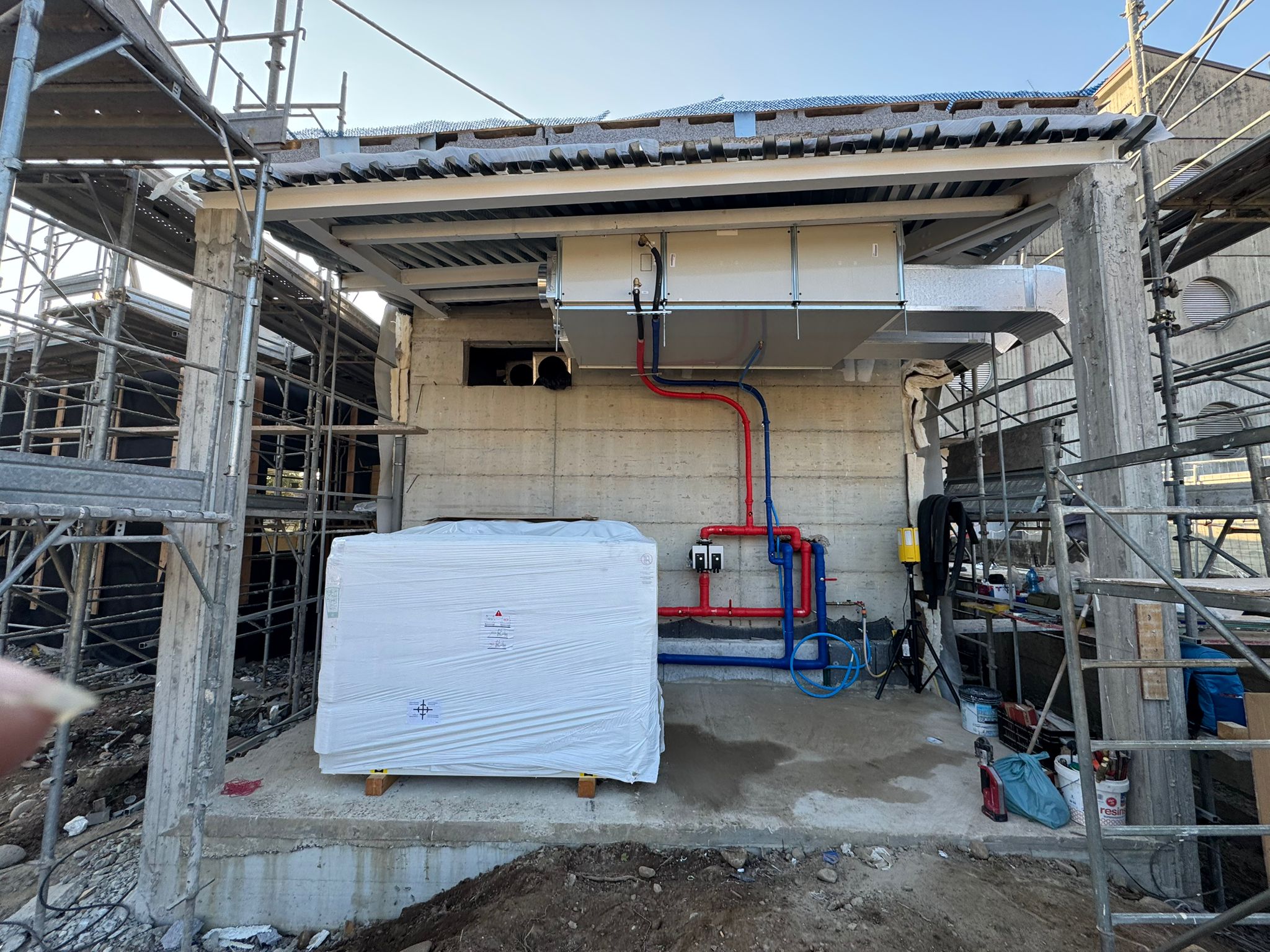 Impianto idrico; reti fognarie nere e saponate; pluviali e reti pluviali; impianto di riscaldamento a pavimento e raffrescamento tramite ventilconvettori a cassetta e canalizzati; impianto di ventilazione meccanica controllata (VMC); produzione di acqua calda sanitaria mediante pompa di calore; impianto radiante con termoregolazione; pompa di calore con unità esterna da 30 kW; sistema di addolcimento dell’acqua con addolcitore; impianto di ricircolo.