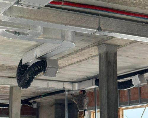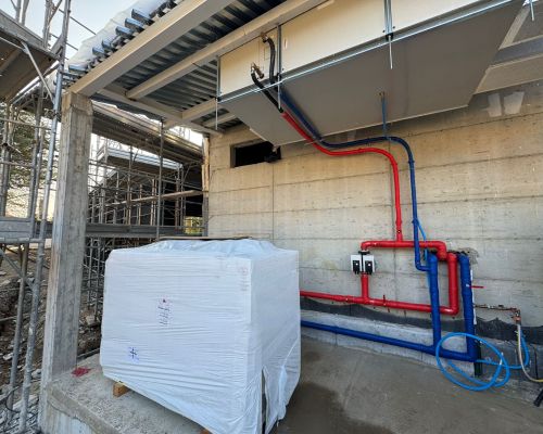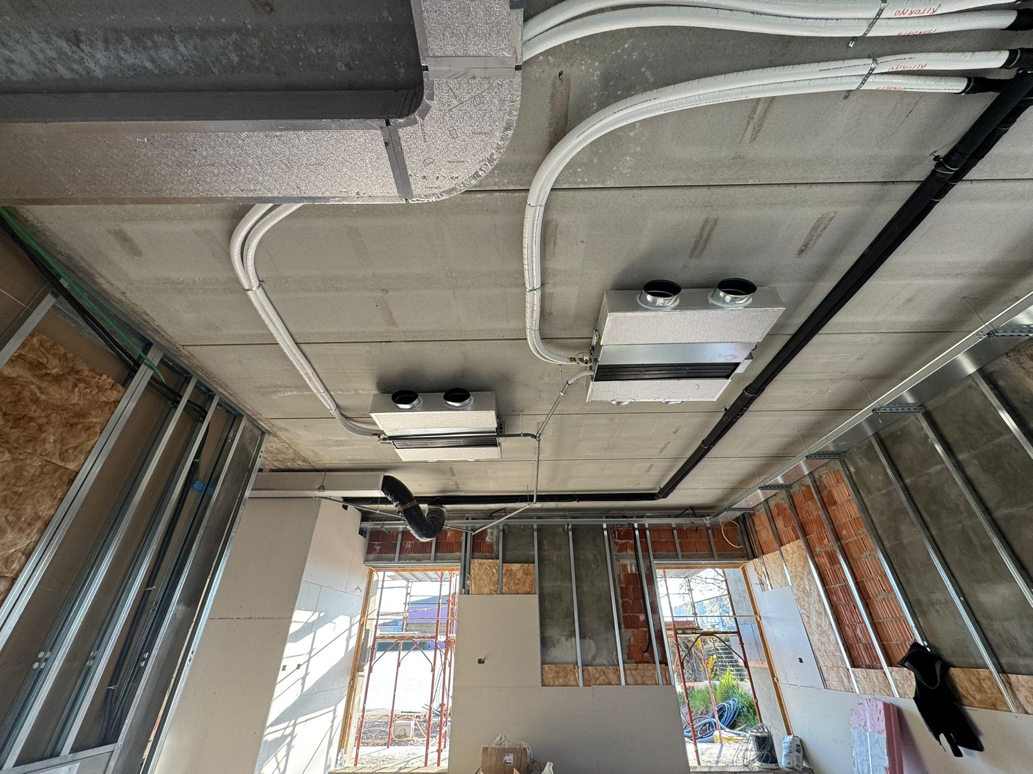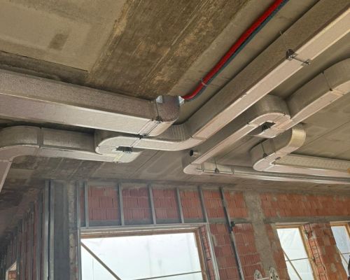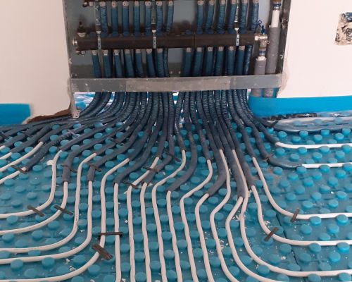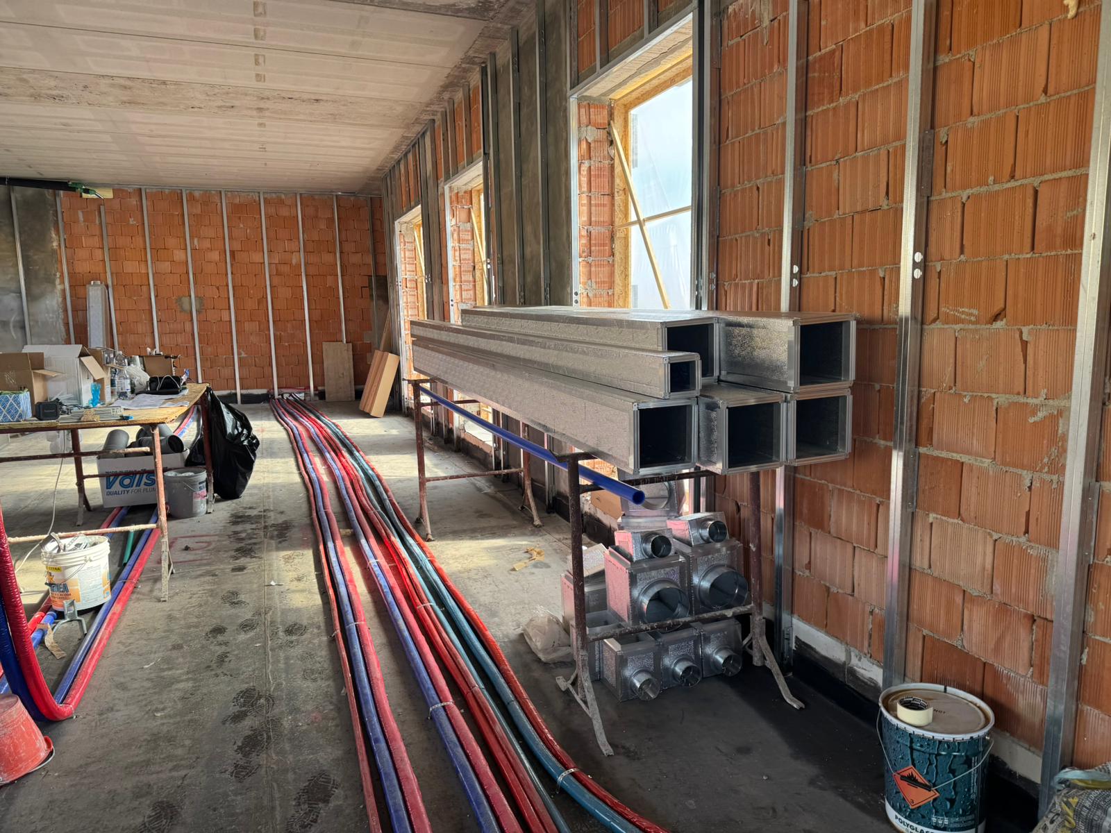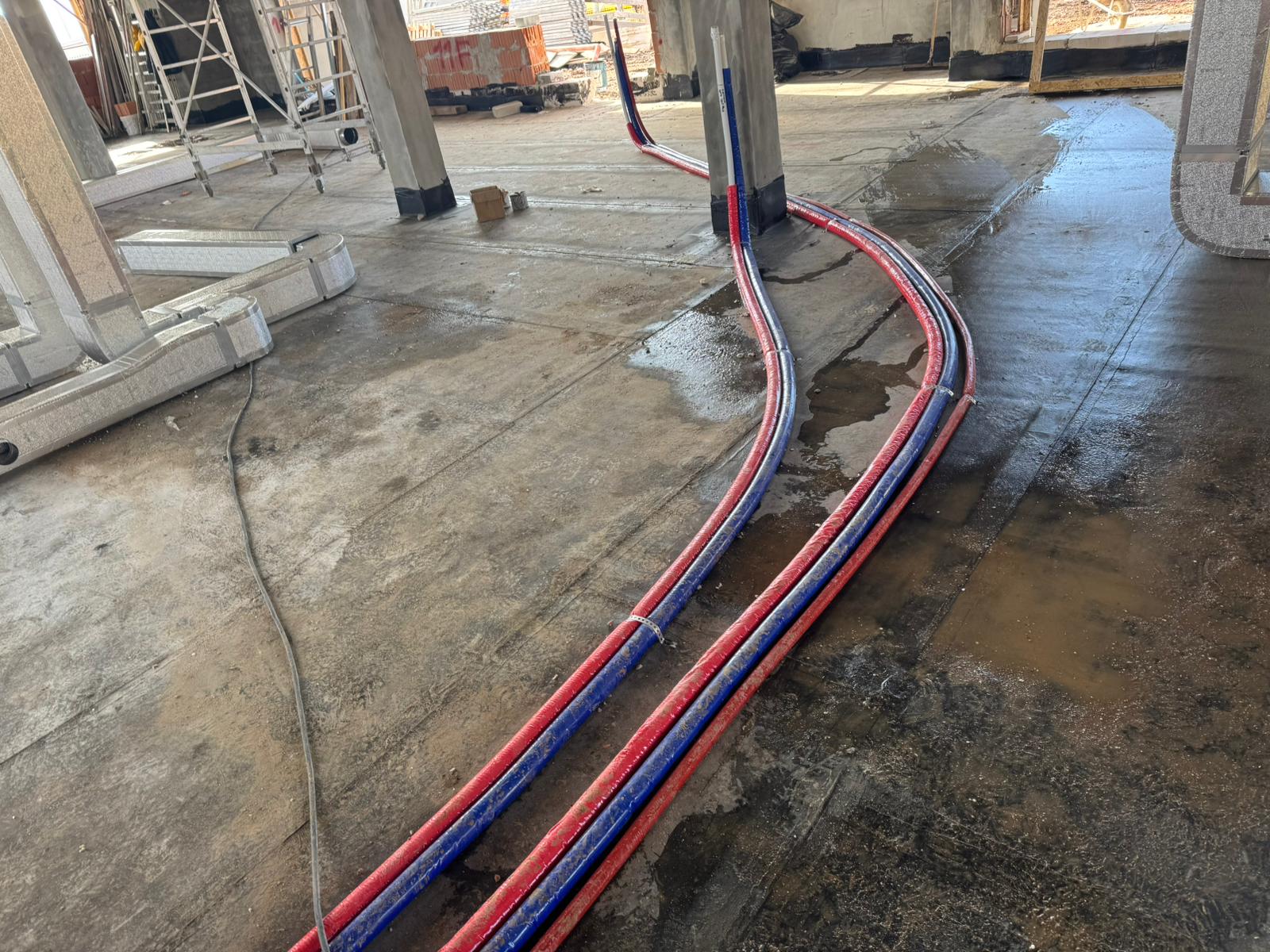 Impianto idrico; reti fognarie nere e saponate; pluviali e reti pluviali; impianto di riscaldamento a pavimento e raffrescamento tramite ventilconvettori a cassetta e canalizzati; impianto di ventilazione meccanica controllata (VMC); produzione di acqua calda sanitaria mediante pompa di calore; impianto radiante con termoregolazione; pompa di calore con unità esterna da 30 kW; sistema di addolcimento dell’acqua con addolcitore; impianto di ricircolo.