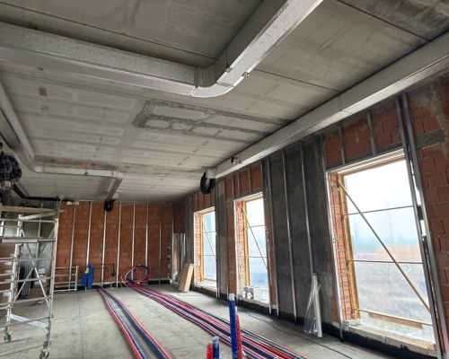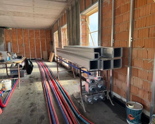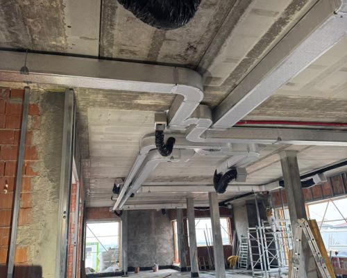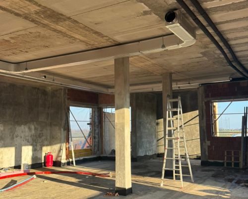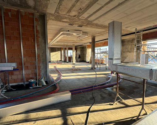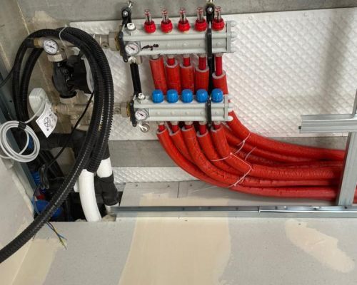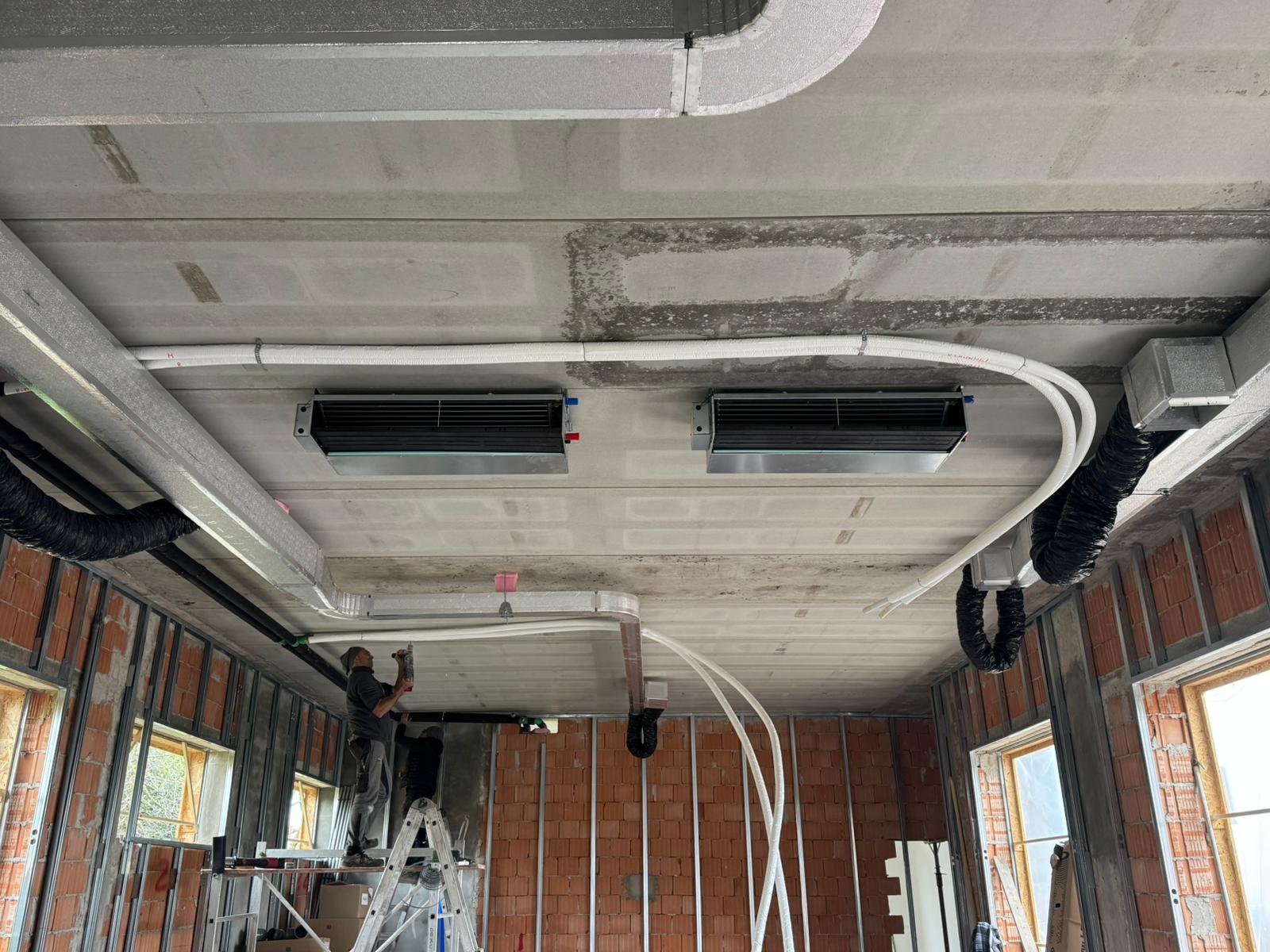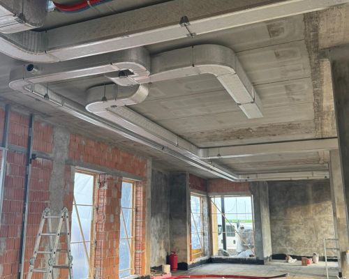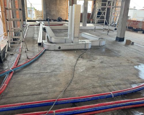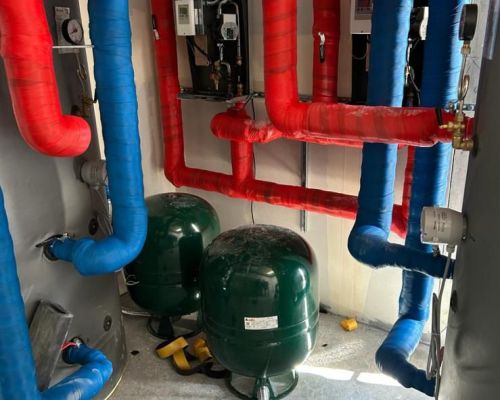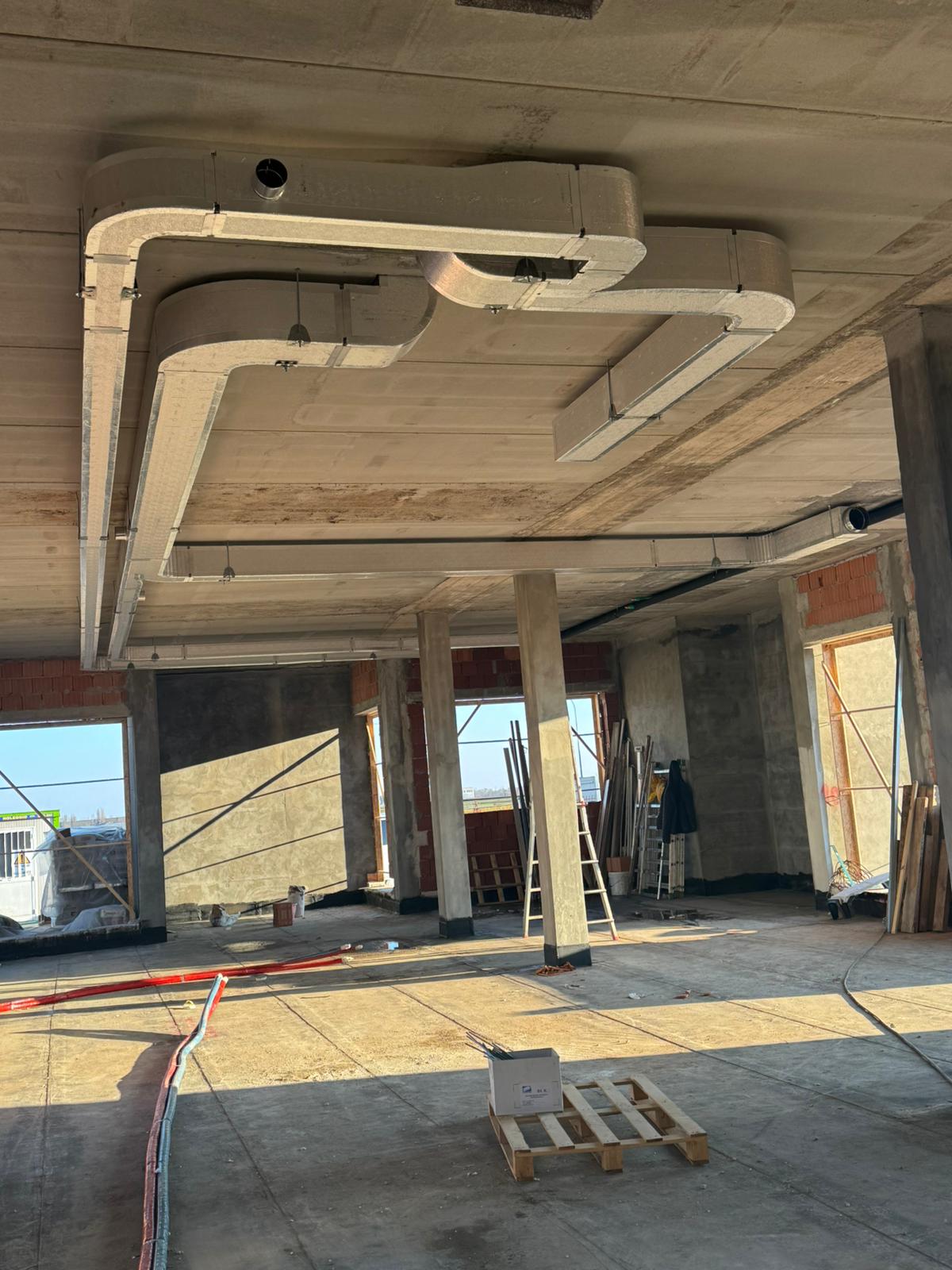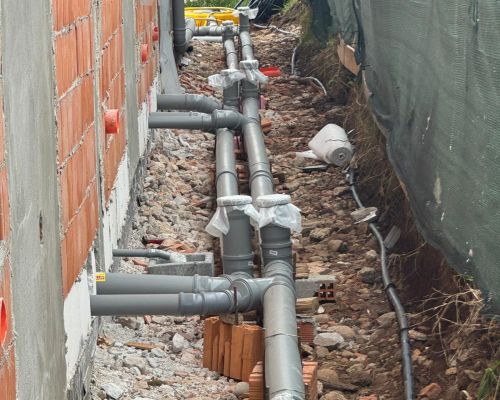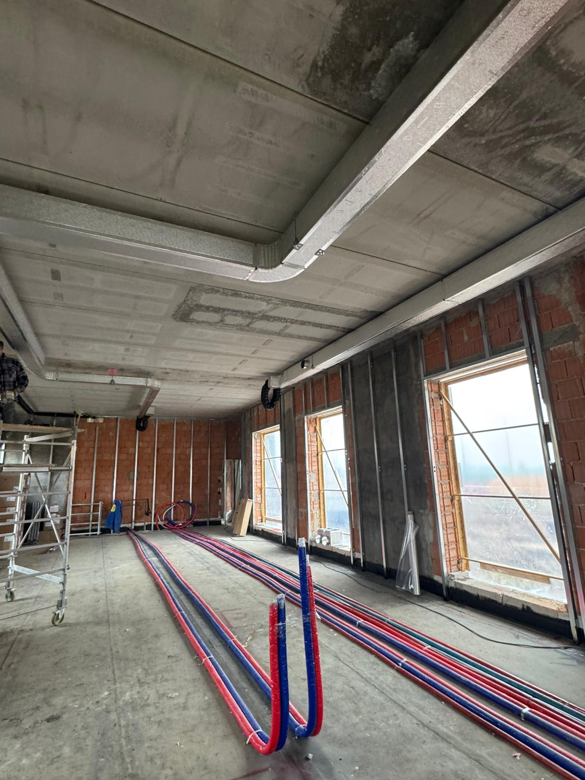 Impianto idrico; reti fognarie nere e saponate; pluviali e reti pluviali; impianto di riscaldamento a pavimento e raffrescamento tramite ventilconvettori a cassetta e canalizzati; impianto di ventilazione meccanica controllata (VMC); produzione di acqua calda sanitaria mediante pompa di calore; impianto radiante con termoregolazione; pompa di calore con unità esterna da 30 kW; sistema di addolcimento dell’acqua con addolcitore; impianto di ricircolo.